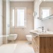 All’interno, gli ambienti sono luminosi, spaziosi e rifiniti con materiali di pregio. Ogni dettaglio – dalle texture naturali alle scelte cromatiche delicate – racconta una ricerca estetica di grande gusto.